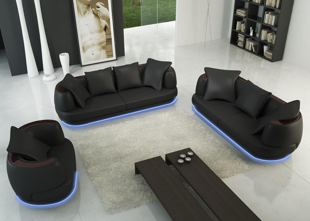Luksusa dizaina dīvāngarnitūra Klasiskā ādas dīvāns Apgaismojums Sēžamvieta Sofa