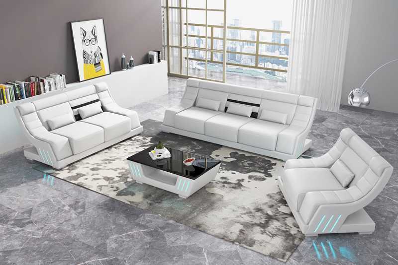 Sofas kompleksa garnitūra, luksussarkanais dīvāns, mēbeles 3-2-1, baltā krāsā, mākslīgais ādas dīvāns.