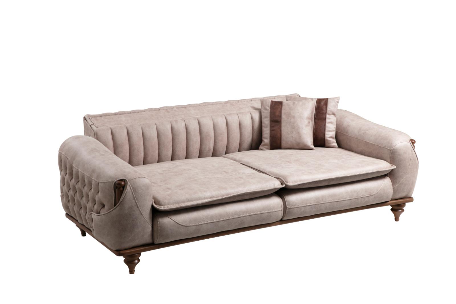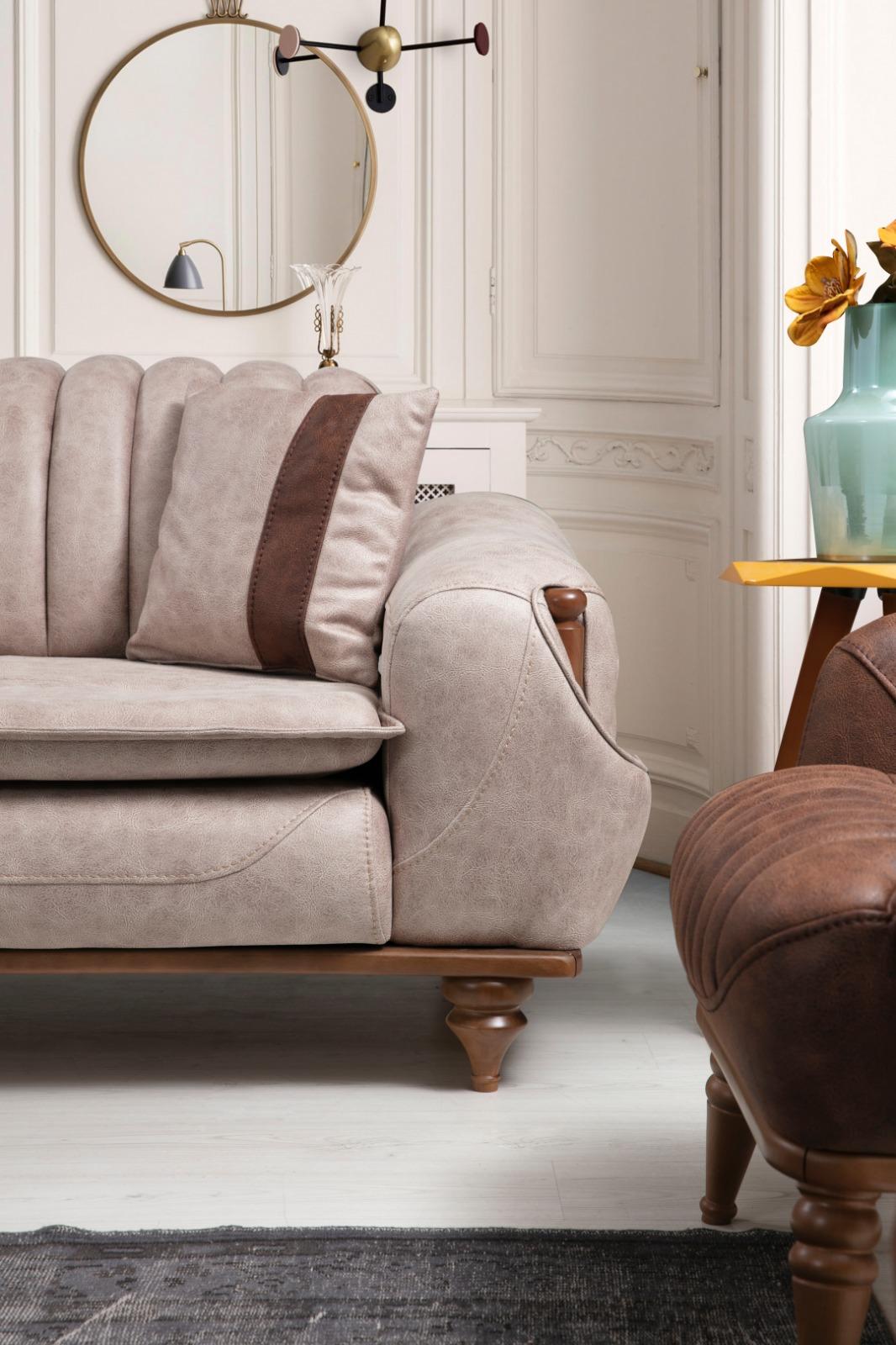 Dizainera dīvāngarnitūra 3+1 sēdvieta galdiņš dīvānam tekstila bruņas koka apdare