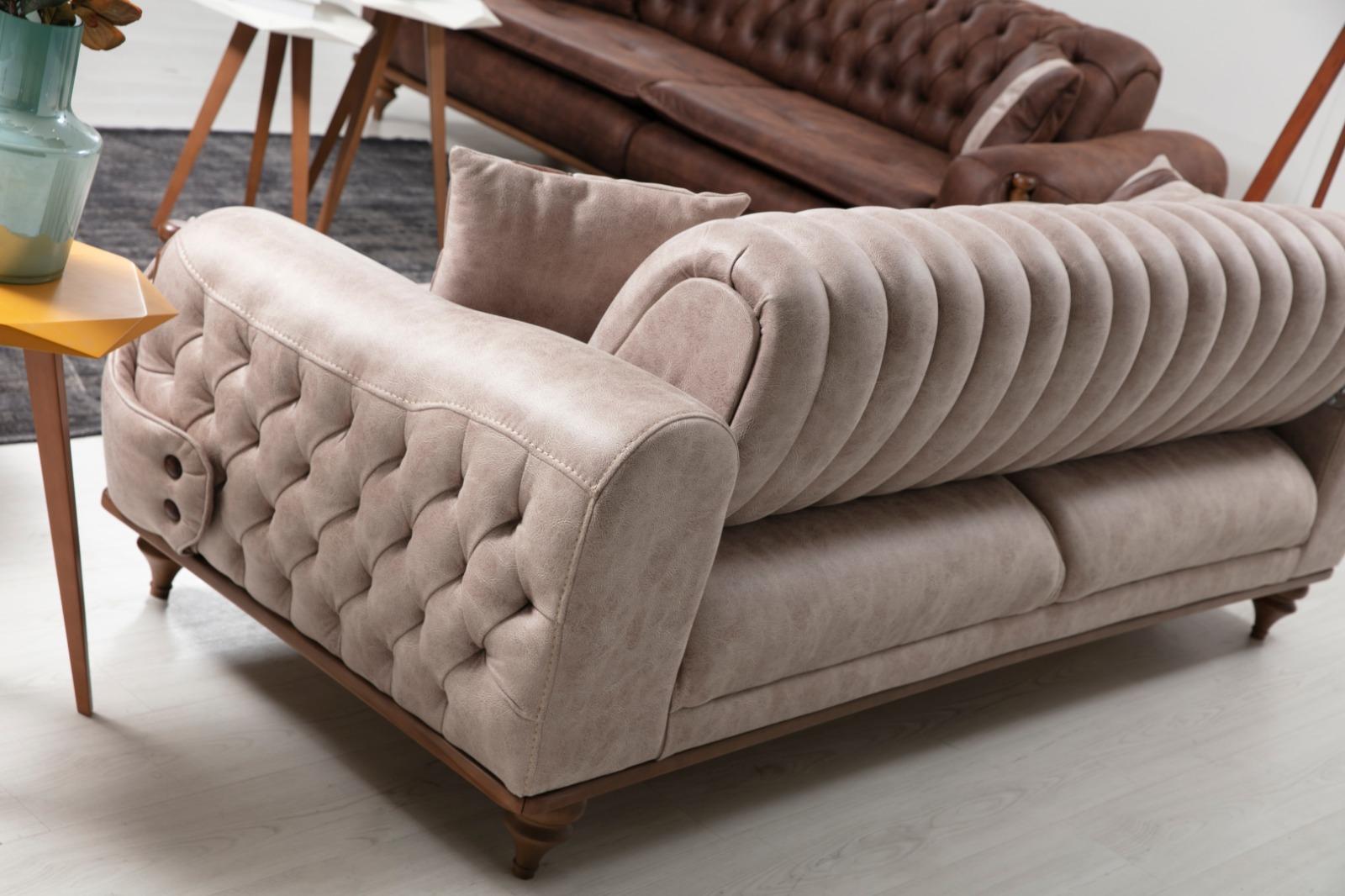 Šis multifunkcionālais mēbeļu komplekts ir lielisks ieguldījums jebkurā mājas interjerā, savienojot stilu un funkcionalitāti. Ar sēdēšanas augstumu apmēram 44 cm un sēdēšanas dziļumu apmēram 56 cm, dīvāngarnitūra nodrošina komfortablu sēdvietu ikvienam. Papildus tam, dīvāna krēsli ir piemēroti gan atpūtai, gan sarunu viesu uzņemšanai. Piedāvājamā daudzveidīgā krāsu izvēle ļauj pielāgot šo mēbelu komplektu atbilstoši jūsu personīgajam gaumei un interjeram, tāpad padarot jūsu telpu par eleganta un siltā gaisotnes oāzi.