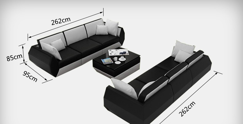 Ādas dīvāns Dīvāns Dīvs ģērbveikals 3+3 sēdvietu veļas dizains Moderns dīvāns komplekts USB jaunums ir moderns un elegants dīvāns, kas būs lielisks papildinājums jebkurai mājas interjeram. Šis dīvāns ir aprīkots ar USB-Klickautomatik, nodrošinot ērtu un vienkāršu mobilo ierīču uzlādi. Ar diviem 3-sēdvietīgiem dīvāniem un kopējam izmēram 262 x 95 x 85 cm, šis komplekts piedāvā daudzvielīgo sēdēšanas vietu un izmantojumu.