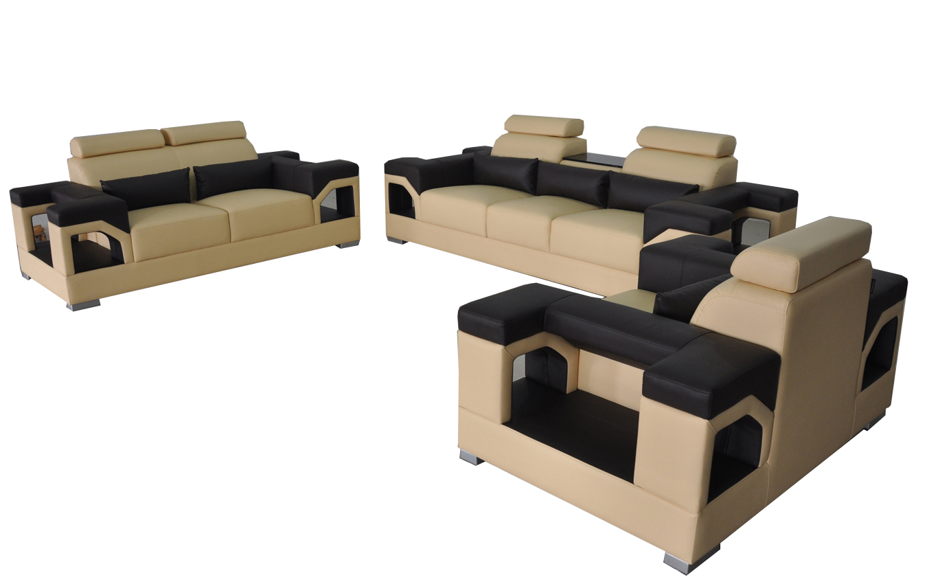 Dzīvojamā istaba ar USB dīvānu komplektu no ādas: dīvāns, fotelis, sofa, luksusa dīvāns 3+2+1.