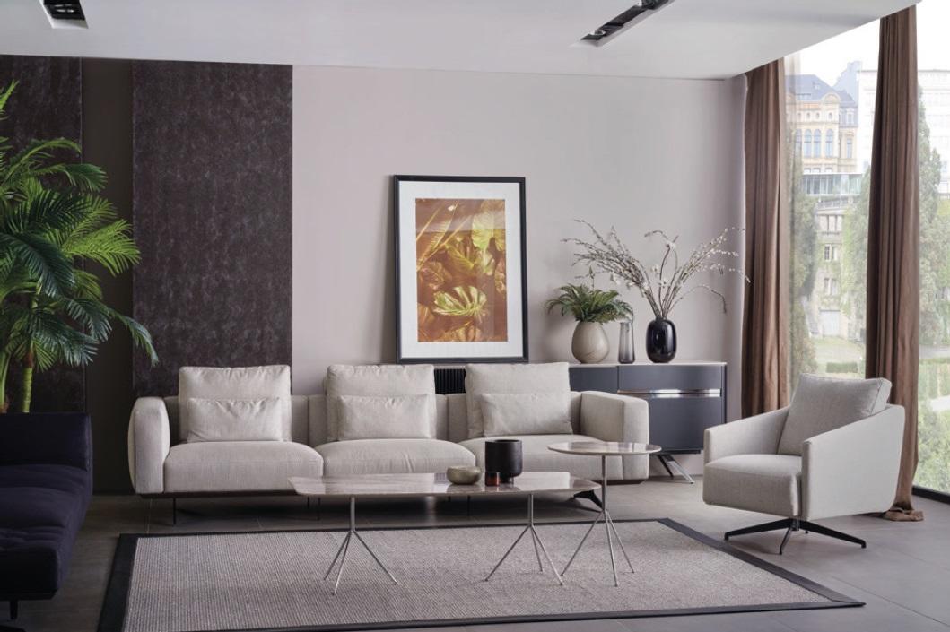 Dīvāns, dzīvojamā istabas mēbeles, moderns stils, mēbeļu komplekts, krēsls, galdiņš.