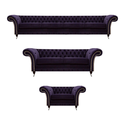 Luksusa dīvāns komplekts Lila dizains Chesterfield mēbeles dzīvojamā istaba: Šis ekskluzīvais komplekts piedāvā augstas kvalitātes un eleganti dizainu, kas radīts, lai savu dzīvojamās istabas interjeru pārvērstu par mājīgu un stilīgu vietu. Dīvāna komplekts sastāv no 4-vietīga dīvāna, 2-vietīga dīvāna un krēsla, nodrošinot pilnvērtīgu sēdvietu visiem jūsu viesiem. Materiāli no Premium īstas ādas un koka ar tekstilu iekšējo konstrukciju garantē izturību un komfortu.