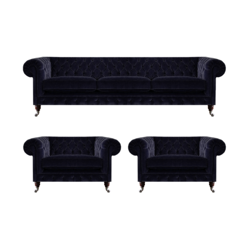 Luksusa dīvāngarnitūra dzīvojamistabai 3 gab.vakara iestatījums mēbeles Chestefīlda apdare
