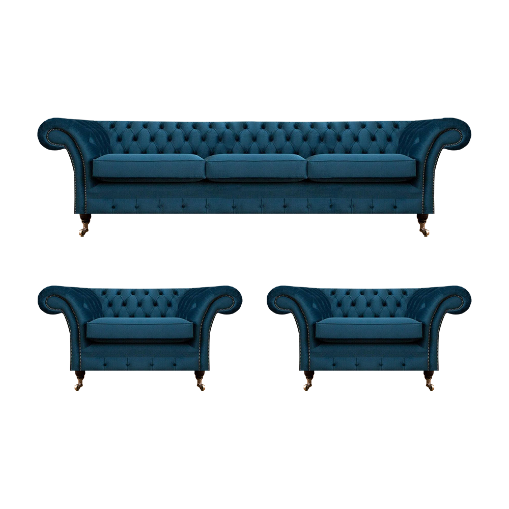 Luxus Zils Dzīvojamā istaba komplekts Chesterfield mēbeles Dīvāni Tekstils