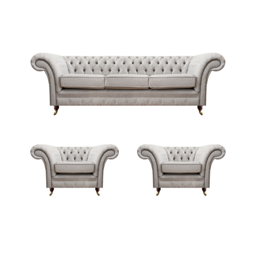 Luksusa iekārta Jauna dīvāngarnitūra dzīvojamā istabā komplektā 3 gabalos Pelēka Česterfīlda: Šī iekārta ir pilnīgi jauna un nodrošina luksusa un elegances sajūtu jūsu dzīvojamajā istabā. Komplektā ietilpst 3 gabali - 3-vietīgs dīvāns un divi krēsli, kas izgatavoti no augstas kvalitātes koka un tekstila, nodrošinot ilgmūžību un komfortu. Dīvāngarnitūra ir pelēkas krāsas un atbilst Česterfīlda stilam, radot stilīgu un mūsdienīgu vidi telpā.