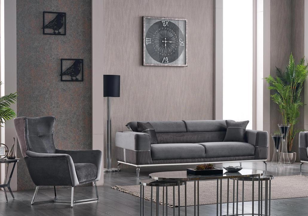 Sofas komplekts 2 gab. Dzīvojamā istaba komplekts ar auduma četru un viena sēdvietu dīvānu ir lieliska izvēle gan ikdienas atpūtai, gan viesu uzņemšanai. Ar izmēriem apmēram 230 x 82 x 97 cm dīvāns un 90 x 81 x 95 cm krēsls nodrošina pietiekami daudz vietas komfortablai sēdēšanai un relaksēšanai. Krāsa atbilstoši attēlam, bet arī ir iespējams pasūtīt citas krāsas. Šis mēbeļu komplekts ir ne tikai funkcionalitāte un komforts, bet arī stils un elegances piešķiršana jūsu dzīvojamās istabas interjeram.
