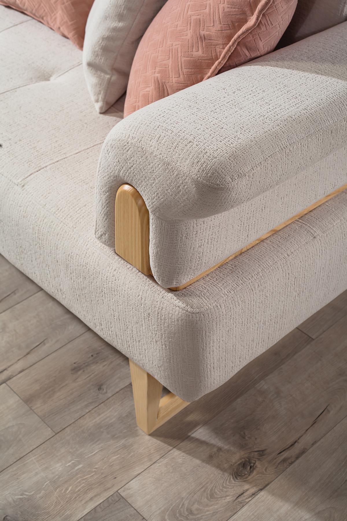Moderns 3+3+1 sēdekļu dīvāns komplekts ar koka detaļām un auduma apdari ir stilīgs un funkcionalitāti apvienojošs mēbeļu komplekts jūsu mājas interjeram. Ar augstas kvalitātes kokā veidotām detaļām un mīkstu, komfortablu tekstiliju apdari, šis komplekts nodrošina gan eleganci, gan ērtību. Izmēros 3+3 sēdvietu dīvāni un vienu krēslu, šis komplekts piedāvā pietiekami daudz vietas, lai ģimene vai viesi varētu izbaudīt relaksējošu laiku kopā.