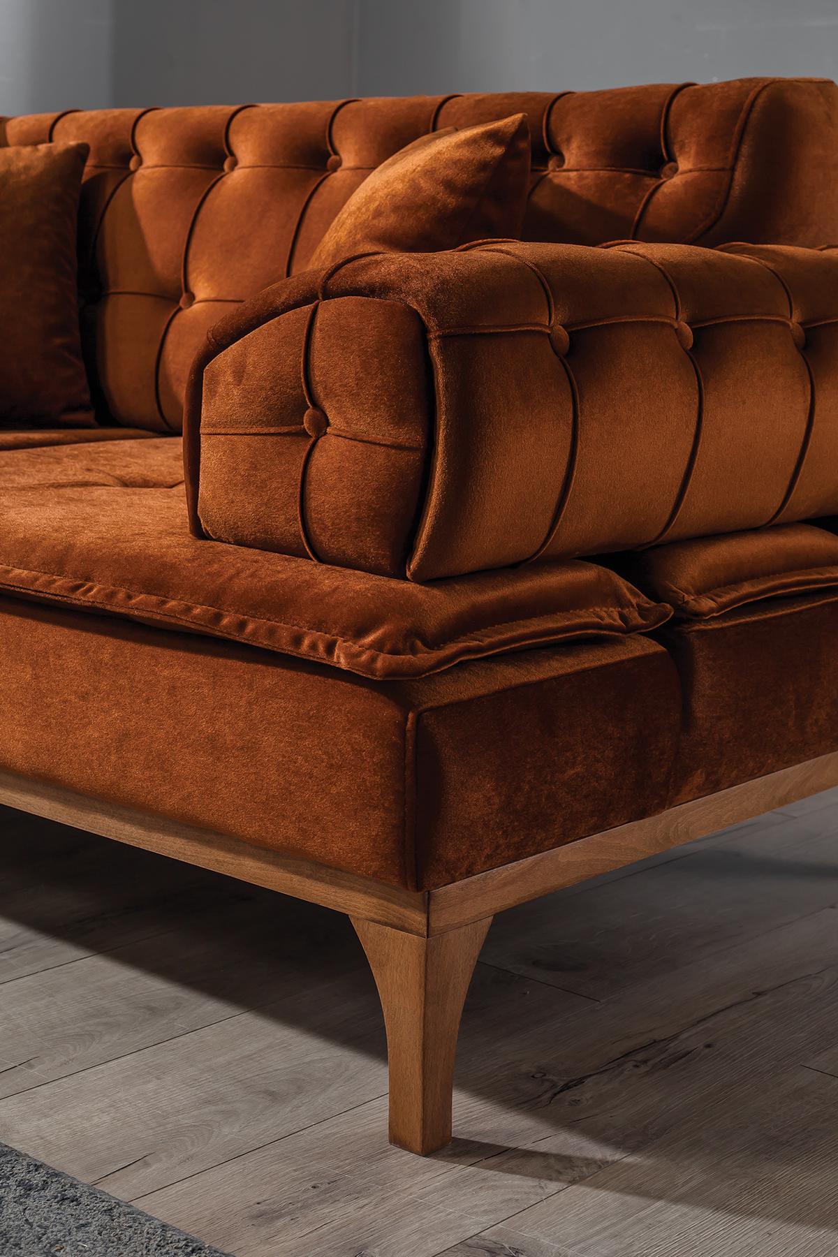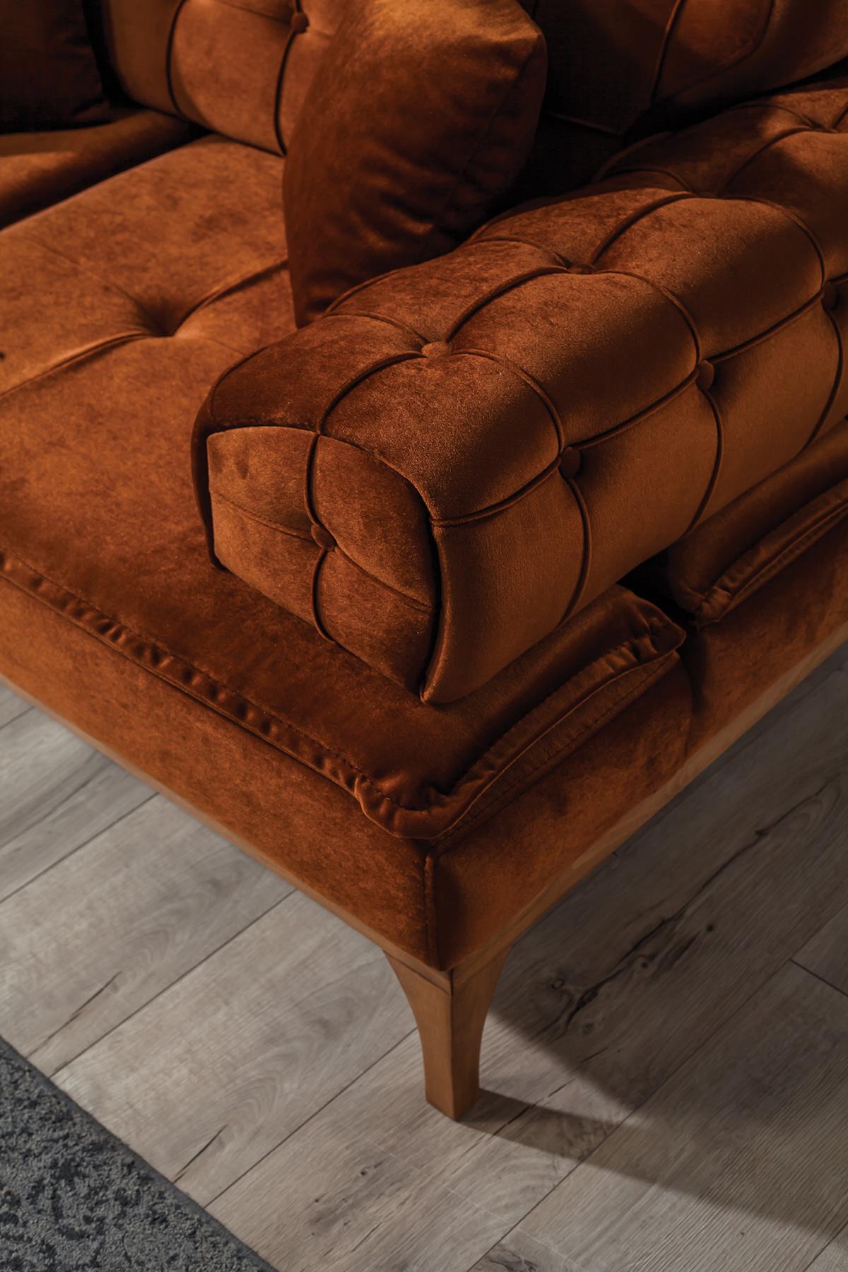 Šis sēdvietu komplekts ir ideāla izvēle gan ģimenes atpūtai, gan viesu uzņemšanai. Oranžā krāsa piešķirs jūsu telpai mūsdienīgu un siltu izskatu, bet pēc pieprasījuma iespējama arī citas krāsas izvēle. Izcils risinājums gan ikdienas lietošanai, gan svinīgākiem pasākumiem, kur komforts un dizains ir vienlīdz svarīgi. Ienāciet savā mājā ar šo eleganto un ērti dizainēto sofa komplektu!