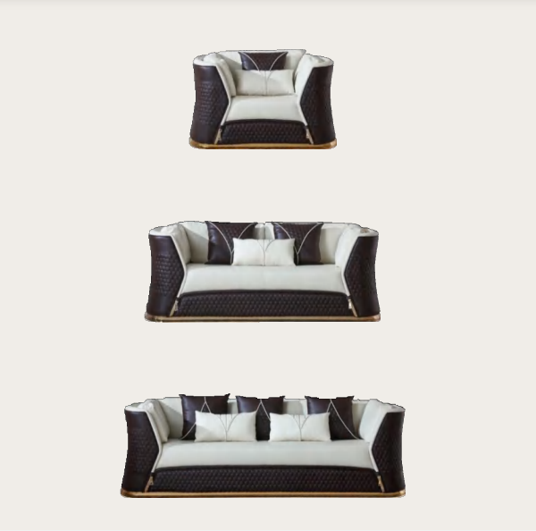 Šis modernais luksusa dīvāns ne tikai papildinās jūsu mājas interjeru ar savu eleganto un stilīgo dizainu, bet arī būs ideāla vieta atpūsties un priecāties ar ģimeni un draugiem. Iekšējais rāmis no īsta koka nodrošina stabilitāti un izturību, savukārt dīvāns ir pārklāts ar kvalitatīvu ādu, kas piešķir tam mīkstumu un komfortu. Neatvairāma izvēle modernai mājai, kur tiks novērtēts gan dizains, gan ērtības līmenis. Šis dīvāns komplekts ir īsts aromāts mājoklim, kas iekārtojies ar gaismu un eleganci.