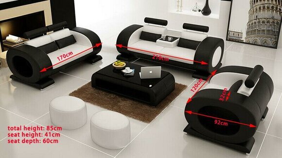 Sēdekļu komplekts ar 3 gabaliem (3tlg) ar dīvānu, galdi un krēslu, tērauda dīvāns Rozes galds Kanceles KRĒSLĀ ir elegants un daudzfunkcionāls mēbeļu komplekts, kas radīts, lai piedāvātu augstas kvalitātes sēdvietas ar stilīgu dizainu. Šis komplekts iekļauj 3-vietīgo, 2-vietīgo dīvānu un krēslu, kas izgatavoti ar premium ādas šķiedras audumu garantētai izturībai un komfortam. Katra dīvāna un krēsla izmēri ir perfekti līgumā un piedāvā patīkamu sēdēšanas pieredzi.