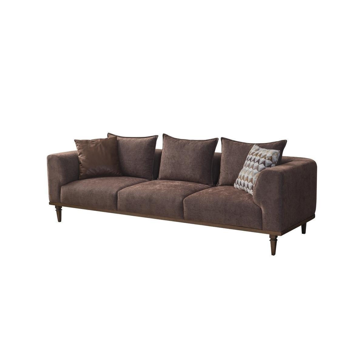 Sēdvietu komplekts ar trīsvietīgu un divvietīgu dīvānu brūnā krāsā auduma dīvāns.
