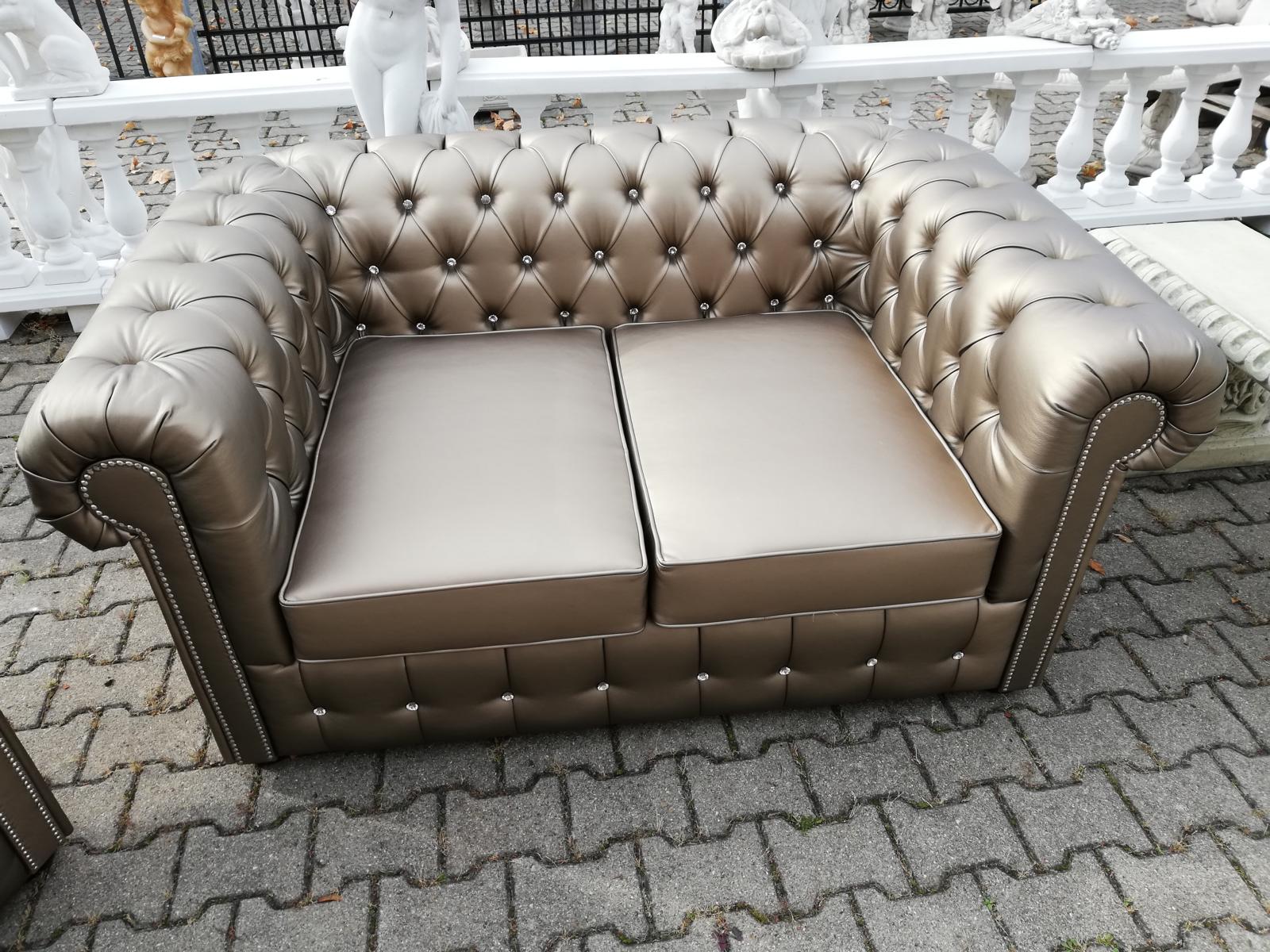 Dizainera Česterfīldas dīvānu komplekts Sofa Dīvāns 2+1 Polsterējums Sēdvietu komplekts Zelts ir izcils jūsu mājas interjera papildinājums, kurā elegance un funkcionalitāte saplūst vienā dizainā. Ar 2-vietīgo dīvānu un krēslu komplektu, kas izgatavots no premium mākslīgās ādas, jums ir iespēja izvēlēties no vairākām krāsu kombinācijām, kas harmoniski iekļausies jebkurā telpā. Piedāvātais komplekts ir pielāgojams, ar iespēju izvēlēties gan dažādus audumu grupu materiālus, gan papildinājumus, piemēram, kristāla akmens pogas vai īstu Swarovski kristāla akmeņu dekoru, kas piešķirs jūsu interjeram ekskluzivitāti. Dīvānu komplekts ir aprīkots ar izturīgu, īstu koka rāmi un atsperu kodolu, nodrošinot stabilitāti un komfortu ilgstošai lietošanai.