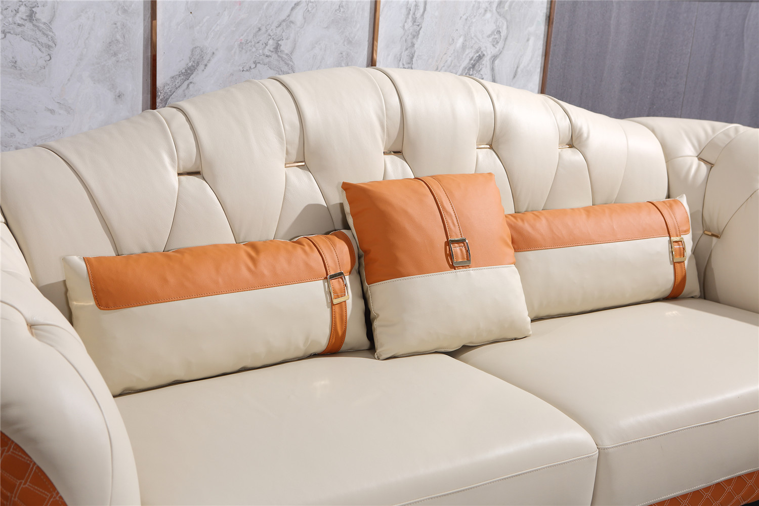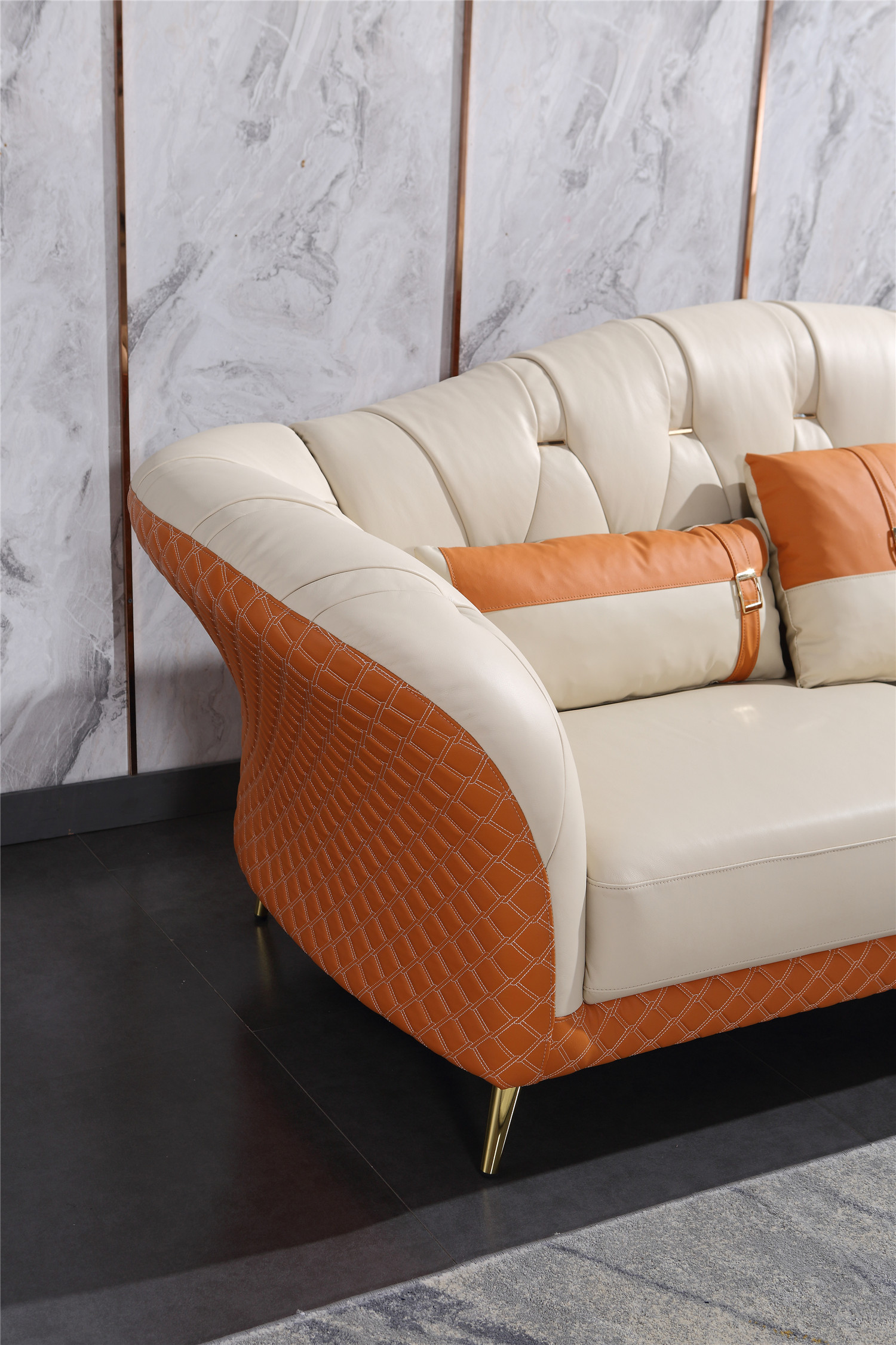 Šī dīvāngarnitūras komplekta papildu priekšrocības ietver piedāvājumu veikalā, kas sastāv no vairākām grupām izvēles iespējām attiecībā uz materiālu un apdari. Grupas var papildināt ar premium īstas ādas, tekstila auduma vai pilnīgas ādas elementiem. Itālijas liellopu āda un īsta koka iekšējais rāmis nodrošina izcilu kvalitāti un ilgmūžīgu produktu, kamēr elegants dizains un pielāgojamība padara šo dīvāngarnitūru ideālu gan mūsdienīgām, gan klasiskām interjera stilu kombinācijām.