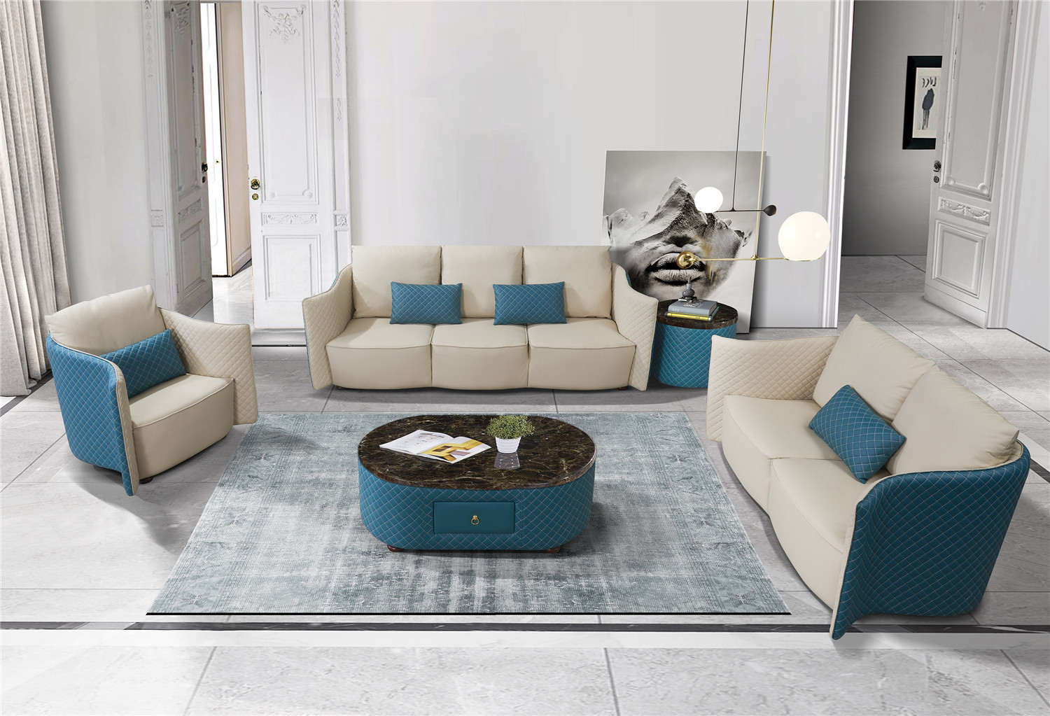 Sofas komplekts 3+2+1 sēdeklis dīvāns sēdvieta polsterēta dīvāns komplekts Moderns dīvāns Jauns: Šis modernais dīvāns komplekts iekaro sirdis ar savu izsmalcināto dizainu un augsto kvalitāti. Ar 3 sēdvietām, 2 sēdvietām un krēslu, tas piedāvā ērtu un stilīgu sēdošanu. Premium ādas šķiedras audums nodrošina komfortu un ilgmūžību, savukārt Iekšējais rāmis no īsta koka piešķir stabilu struktūru. Krāsas iespējas ir brīvas izvēlei, lai saskanētu ar jebkuru interjeru. Ar šo dīvāna komplektu Jūs iekārtosiet savu telpu ar eleganci un komfortu vienlaikus.