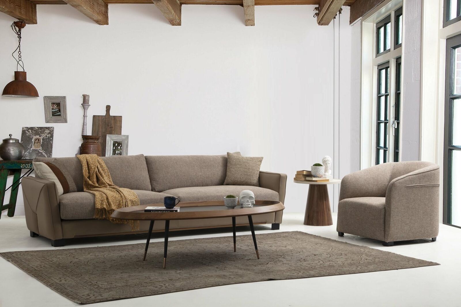 Obligāti jāizceļ, ka modernais auduma krēsls papildina šo komplektu ar savu unikālo dizainu un ērtumu. Spilgtākās telpas vietās tas kalpos kā eleganta akcenta detaļa, kur jūs varat atpūsties vai lasīt grāmatu. Katra no sofām un krēsla izmēriem ir rūpīgi izturēti un labi domāti, lai nodrošinātu gan stilu, gan komfortu jūsu mājas interjeram. Šis modernais komplekts būs gan funkcionāls, gan pievilcīgs papildinājums jebkurai mājai vai dzīvoklim, nodrošinot ģimenei un draugiem vietas kopīgai atpūtai un sarunām.