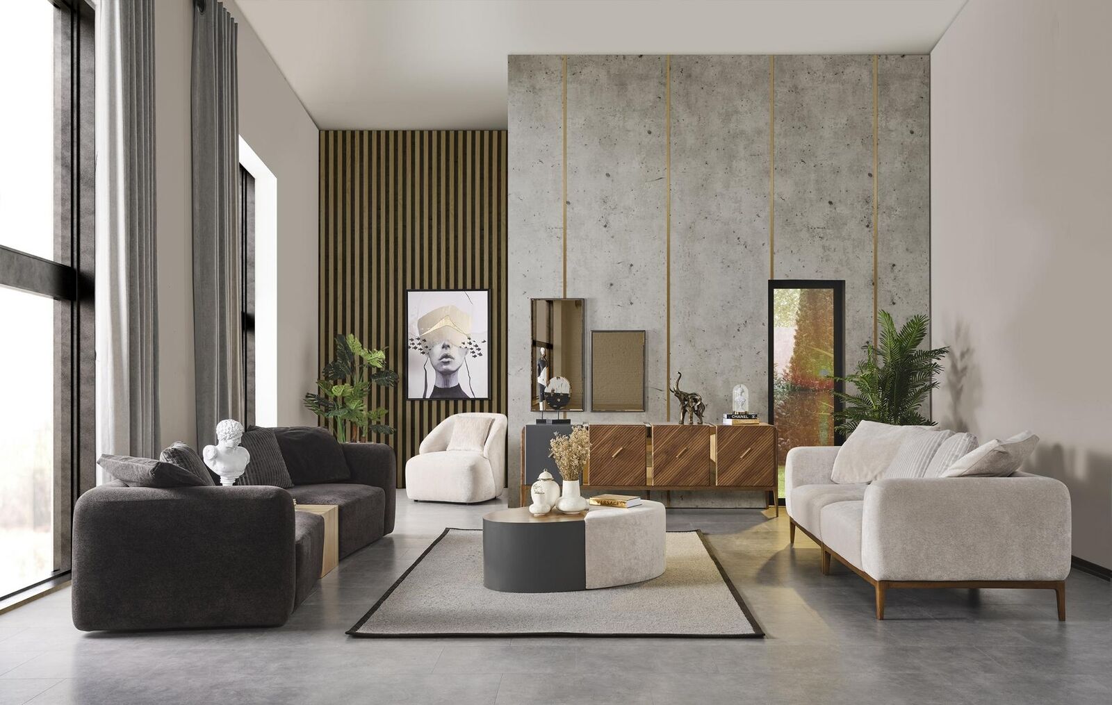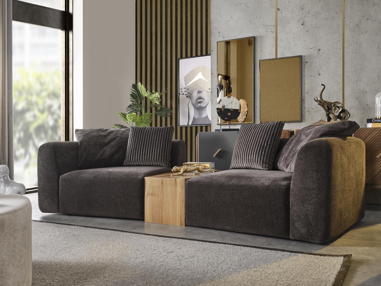 Šis eleganatās dzīvojamās istabas komplekts ieskauj Jūs ar mājīgumu un stilu. Izcils dizains un augstas kvalitātes materiāli nodrošina gan komfortu, gan ilgmūžību. Komplektā ietilpst divvietīga dīvāna komplekts 4 vietas, kas nodrošina ērtības un izsmalcinātu izskatu. Lieliska izvēle gan mājas interjera, gan atpūtas telpas iekārtošanai.