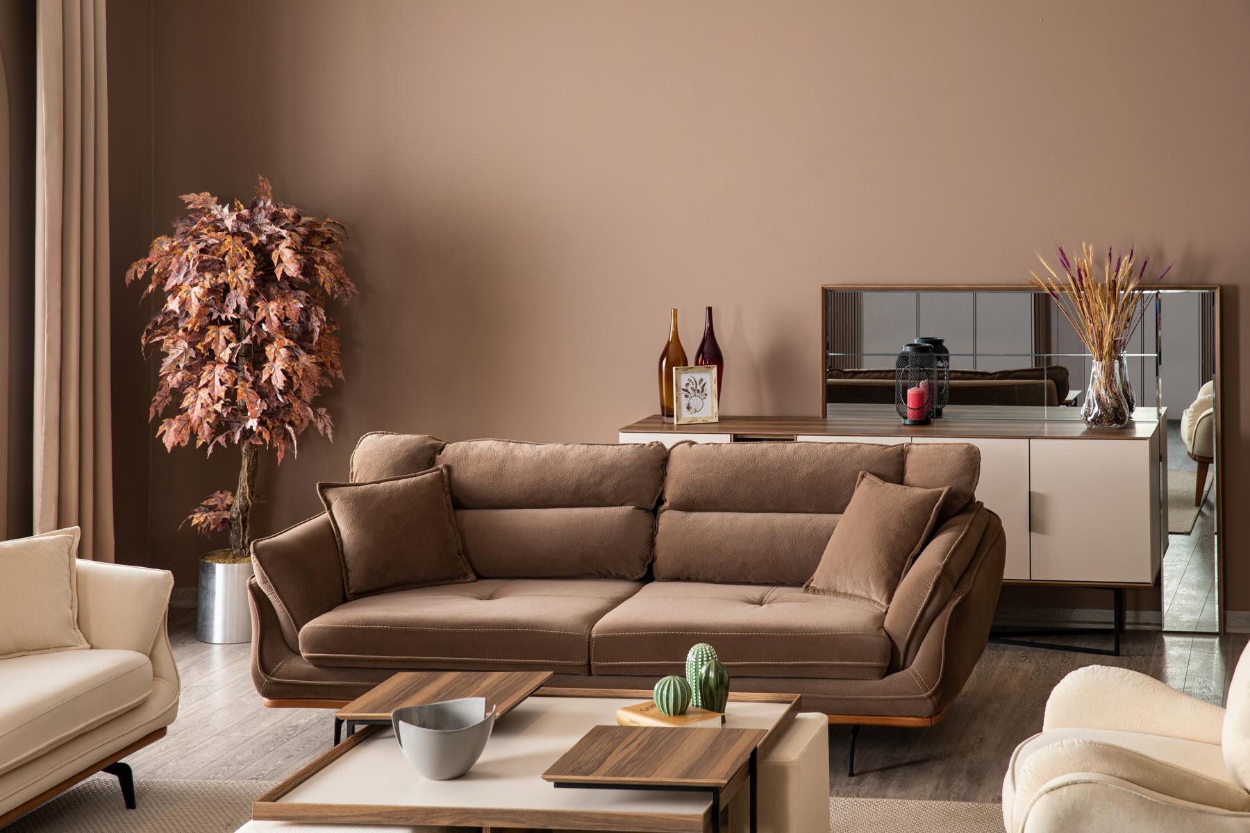 Papildus 3-vietīgajam dīvānam, komplektā ietilpst arī galds un 2 vietas ar individuāliem krēsliem, kas sniegs plašas iespējas iekārtot gan dzīvojamā istaba, gan atpūtas zonu. Kvalitatīvā materiālu izmantojums garantē izturību un ilgmūžību, bet modernais dizains padara šo komplektu ideālu gan jaunām, gan jau esošām mājokļa iekārtojumiem. Šis komplekts būs lielisks papildinājums jebkuram mājoklim, nodrošinot gan komfortu, gan stilu, kas būs ievērojama iekšējās apdari pabeigšanas detaļa.