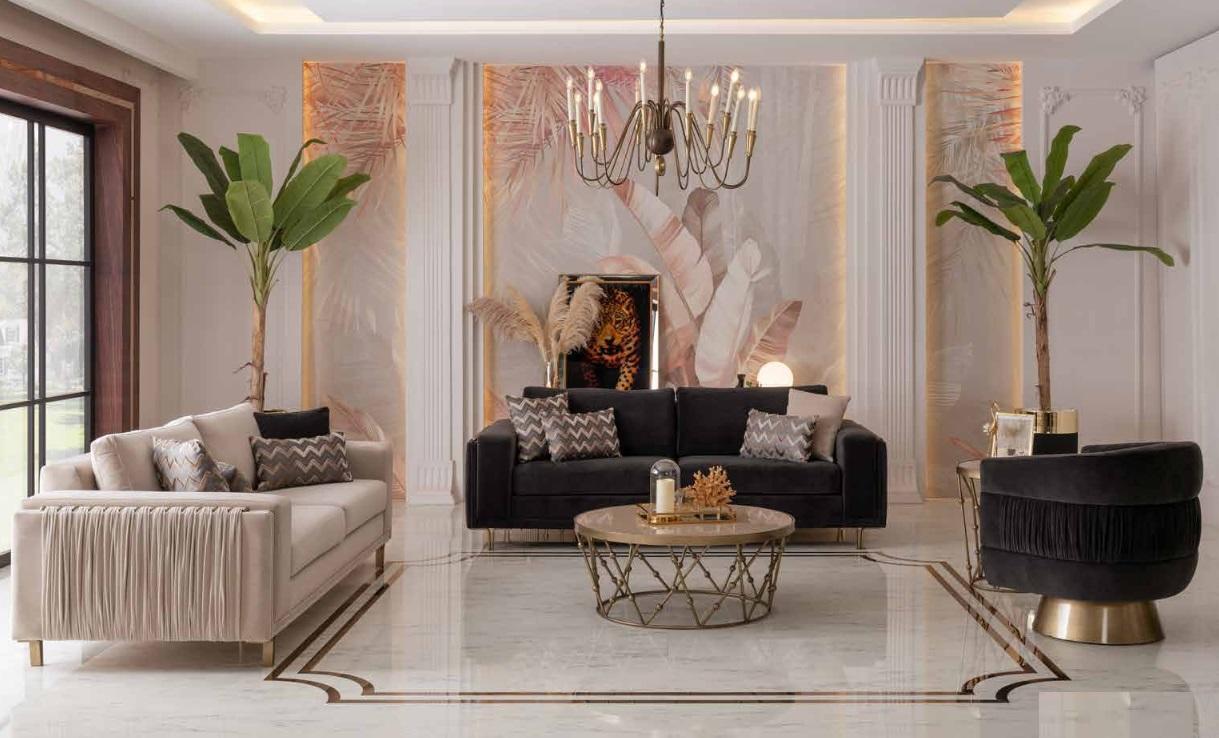 Schiker Sofa komplekts Ar diviem 3-vietīgiem dīvāniem un krēslu dzīvojamā istabā Jauna dizaina