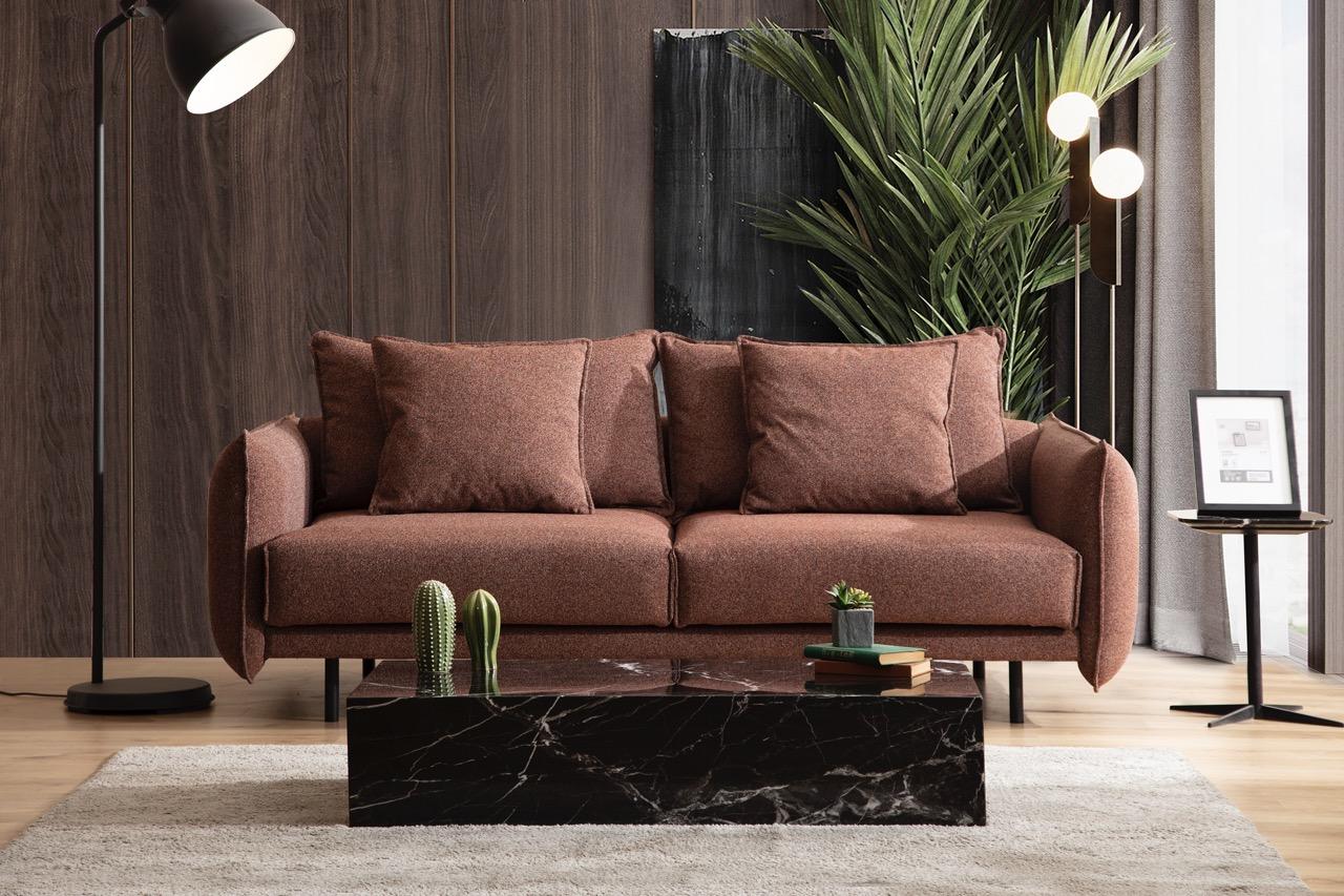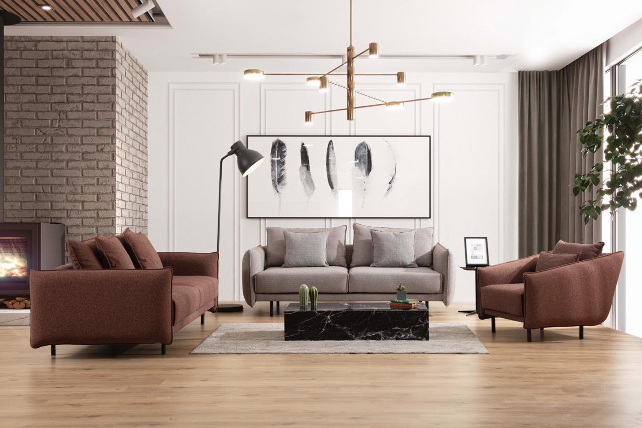 Šis Krēsli 3+3+1 sēdvietu luksusa dīvāns brūns dīvānu komplekts ir perfekts izvēle tiem, kas vēlas apvienot eleganci un komfortu savā mājā. Kopumā tas sastāv no 3 sēdvietu dīvāna, 3 krēsliem un 1 krēsla, kas nodrošina pietiekami daudz sēdvietu gan ģimenes sapulcēm, gan viesu uzņemšanai. Dīvāni un krēsli ir izgatavoti no augstas kvalitātes tekstila ar metāla elementiem, kas garantē gan izturību, gan eleganci. Šis komplekts ir izmērā apm. 215 x 105 x 80 cm, nodrošinot pietiekami daudz vietas, lai ikviens varētu komfortabli atpūsties un sarunāties.