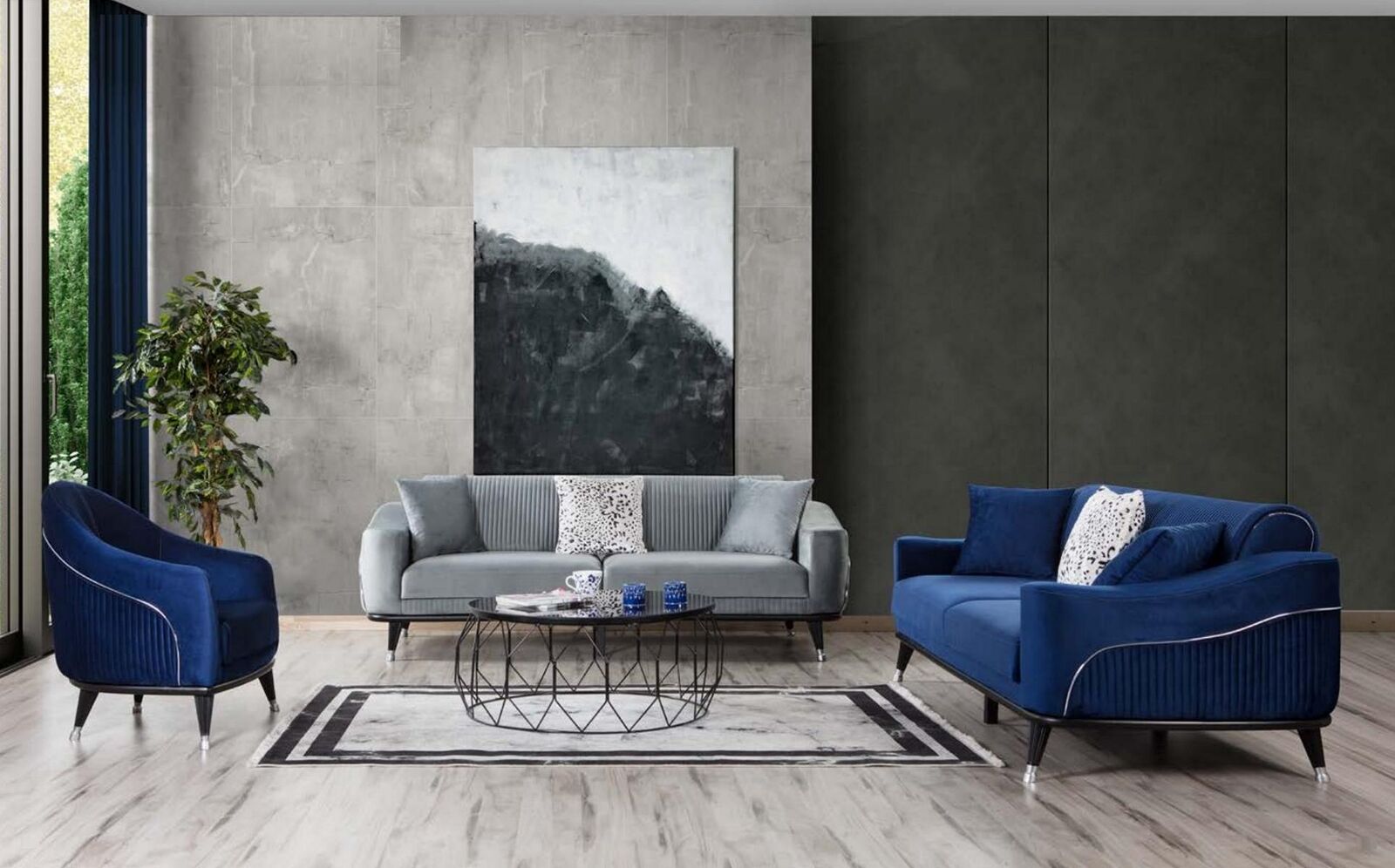 Sofasets 3+3+1 ​​Sēdvietas Kanapes Apgalvoti Dīvāni Koki pelēks zils Veltņu