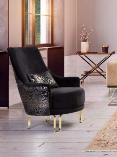 Sofagarnitūra Melna gulta 3+3+1 vietas krēsls Elegantais metāls audekls