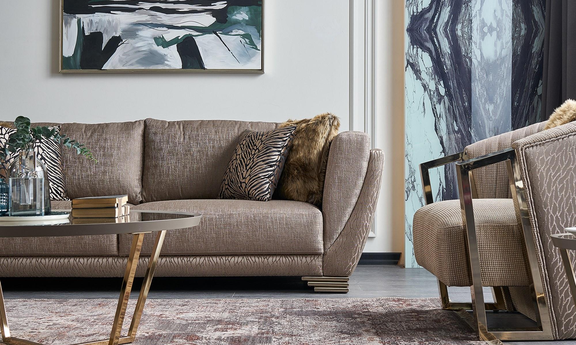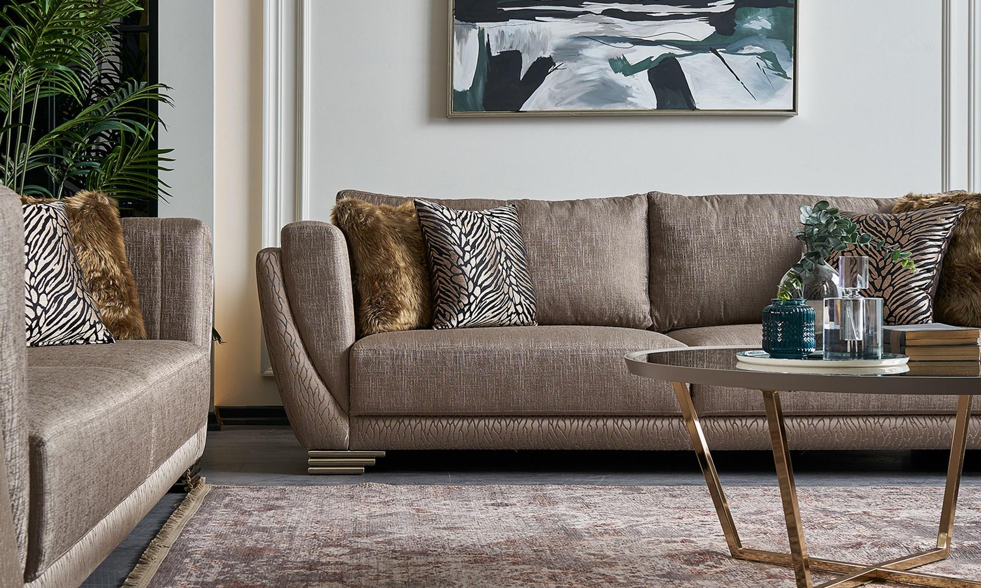 Audumainas sofa, 3-vietīgā dīvāngarnitūra ar brūnu apdari, komplektā 3 gabalos - moderns.