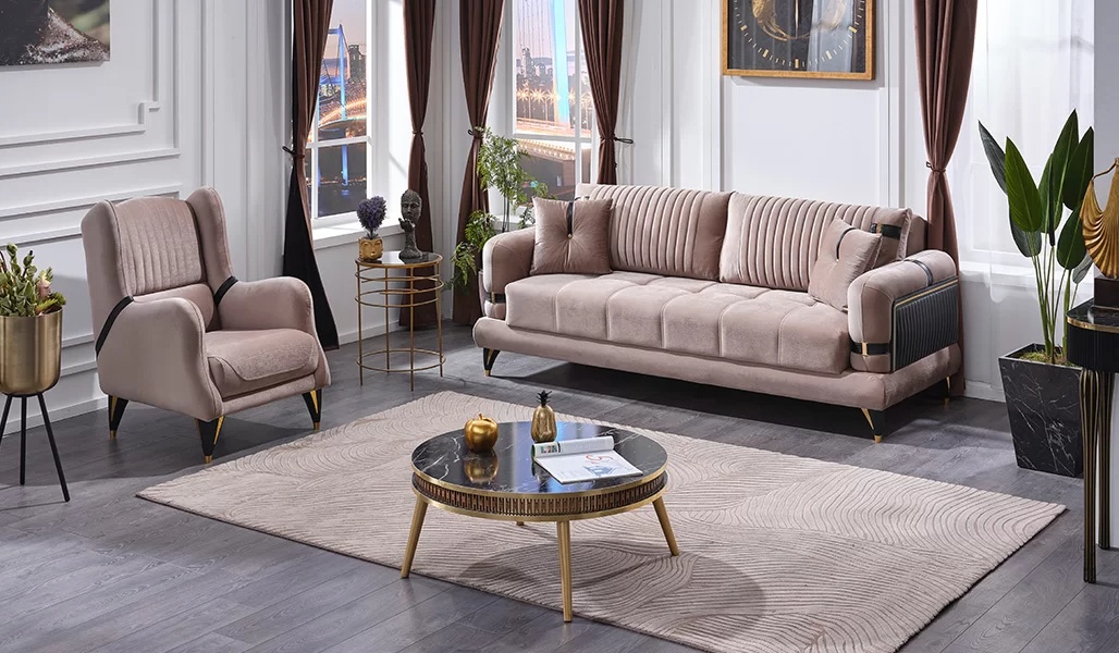 Mūsdienu dīvānu komplekts 3+1 sēdvietām, veidots no augstākās kvalitātes beža poliestera, ir elegances un komforta simbols, kas lieliski iederas mūsdienīgā interjerā. Katrs elements ir rūpīgi izstrādāts, nodrošinot ne tikai estētisku baudījumu, bet arī ilgmūžību un funkcionalitāti. Polsterējums aicina iegrimti relaksācijā, radot patīkamu atmosfēru jūsu mājās. Šis dīvānu komplekts ir izcila izvēle, kas atspoguļo izsmalcinātu dzīvesstilu un augstās prasības pret mēbelēm. Ar divdesmit gadu pieredzi luksusa mēbeļu ražošanā, mūsu zīmols piedāvā ekskluzīvas dizaina iespējas, kas piešķirs jūsu telpai unikālu šarmu.