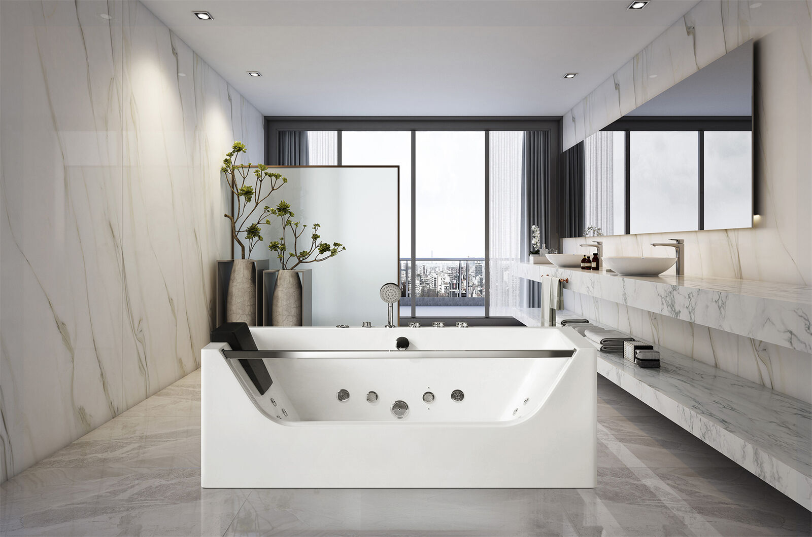 Opcijās ir iekļauta zemūdens krāsu gaisma, gaisa burbuļu masāža un digitālais skārienpanelis ar FM radio, Bluetooth un USB saskarni. Arī termostatiska apkure un ozona sterilizācija piedāvā papildu relaksāciju un tīrīšanu. Ar elegantu krāsu, šis vannas baseins ne tikai uzlabos jūsu vannas istabas dizainu, bet arī radīs īpašu relaksējošu atmosfēru, kādai arī ir funkcionalitāte un komforts.