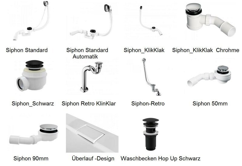 Šis komplekts ne tikai nodrošina estētiski pievilcīgu dizainu vannas istabai, bet arī ir ērti lietojams ikdienas vajadzībām. Plaukti un skapji ar dažādiem augstumiem, dziļumiem un garumiem ļauj efektīvi organizēt telpu un saglabāt īru kārtību. Papildus komplektā ietilpst jaucējkrāns, sifons un galvas balsti, kas padara šo komplektu par pilnvērtīgu risinājumu jūsu vannas istabai.