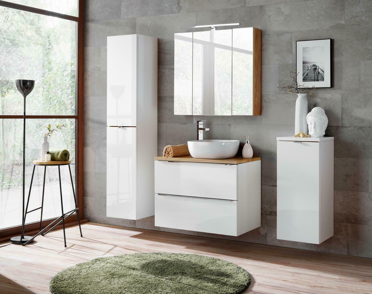 Dizainas vannas istabas mēbeles Vannas istabas 4 gab. komplekts Garnitūra Dekoratīvs skapis Izlietne ir elegants un funkcionalas vannas istabas komplekts, kas ieviesīs stilu un praktiskumus jūsu vannas istabā. Šis komplekts ietver izsmalcinātu un izturīgu dizainu, kas saderēs ar dažādām interjera stila izpausmēm. Izlietnē, kas ir apmēram 80 cm garš, 57 cm augsts un 46 cm dziļš, varēsiet ērti mazgāt rokas, savukārt skapīši ar dažādiem izmēriem nodrošinās efektīvu glabāšanu un telpas iekārtojumu.