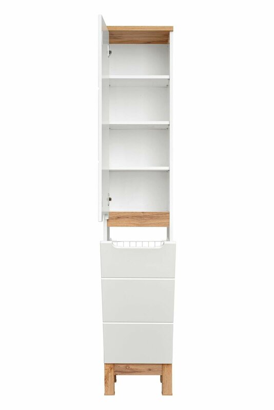 Augstais skapis Vannas istaba Plaukts Vannas skapis Vannas mēbeles Plaukti Vannas istabai ir lieliska izvēle tiem, kuri cenšas iekārtot savu vannas istabu ar funkcionāliem un stilīgiem elementiem. Šis skapis ne tikai nodrošina glabāšanas iespējas, bet arī piešķirs jūsu vannas istabai modernu un elegantu izskatu. Izmantojot šo skapi, jūs varēsiet saglabāt lielāko daļu savu vannas istabas lietotņu un piederumu tā, lai tie būtu ērti un vienmēr pieejami. Tā izcilā kvalitāte un praktiskās funkcijas padarīs jūsu ikdienu vannas istabā daudz organizētāku un mazāk stresainu.