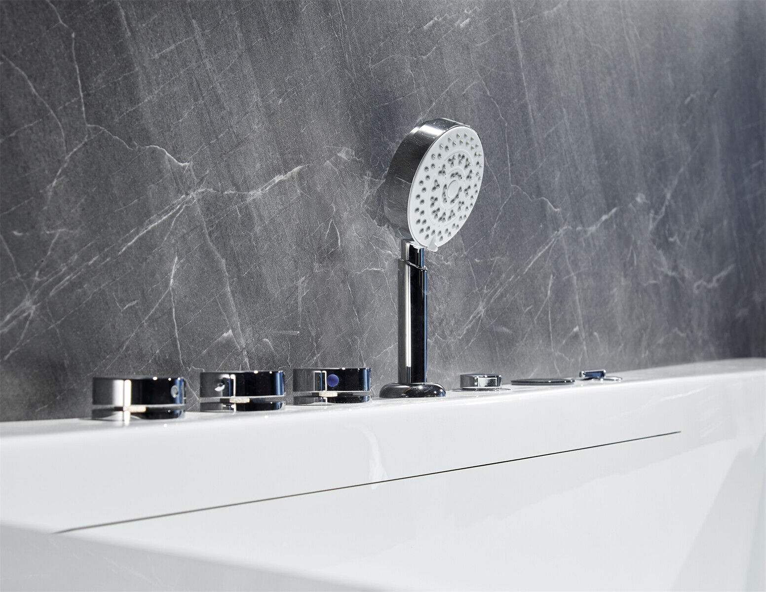 Šī vannas istaba ietver standarta aprīkojumu, tostarp masāžas sprauslas, jaucējkrānu, rokas dušu, masāžas funkciju un daudz vairāk. Opcijās ietilpst zemūdens krāsu gaisma, gaisa burbuļu masāža, termostatiska apkure, ozona sterilizācija un digitālais skārienpanelis ar FM radio, Bluetooth, USB saskarni un skaļruņiem, kas nodrošina papildu ērtības un jaunas izklaides iespējas. Krāsa atbilst attēlam, bet vannas istabas funkcionalitāte un modernais dizains padarīs jūsu vannas laiku par īpašu un atspalvotu mirkli.