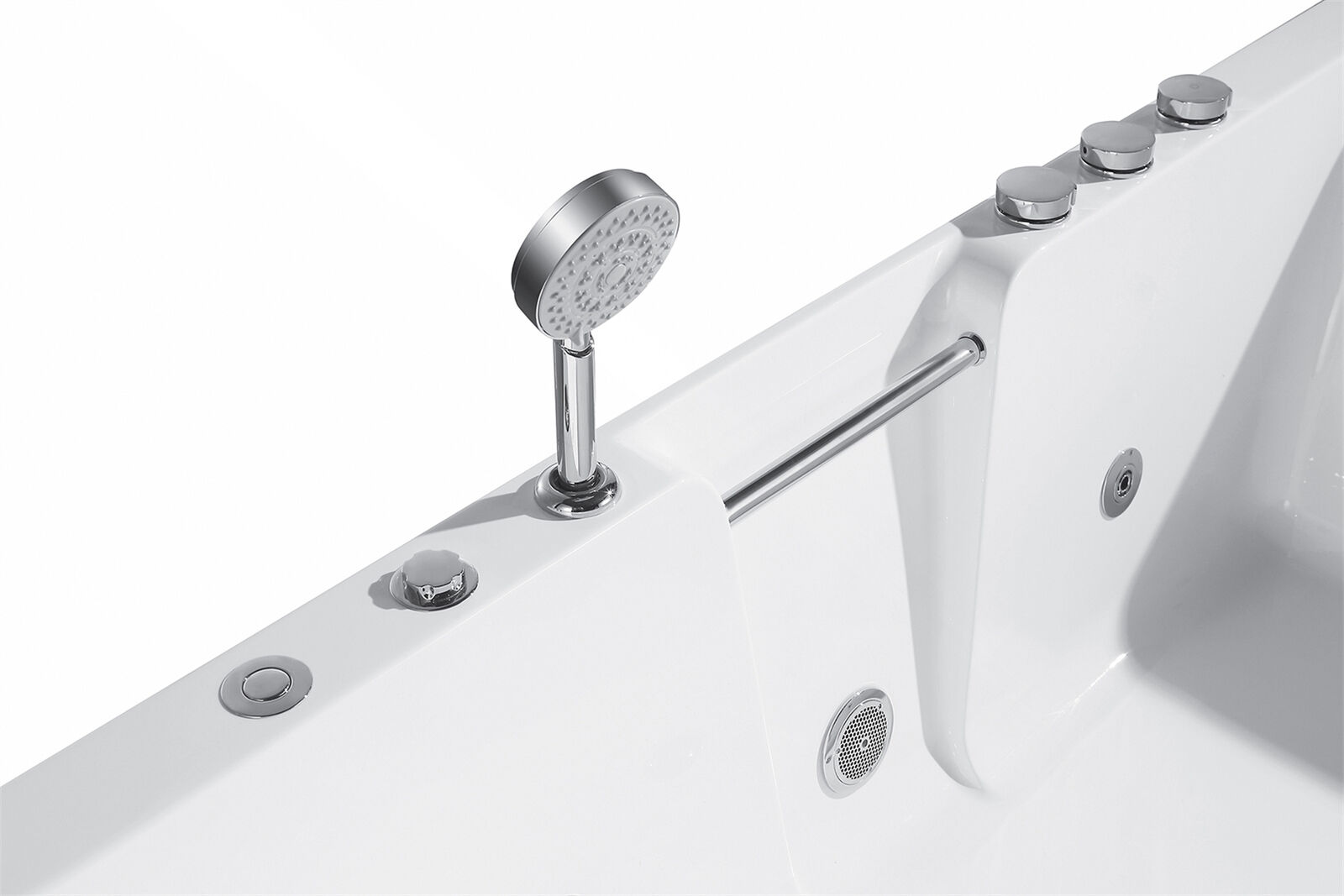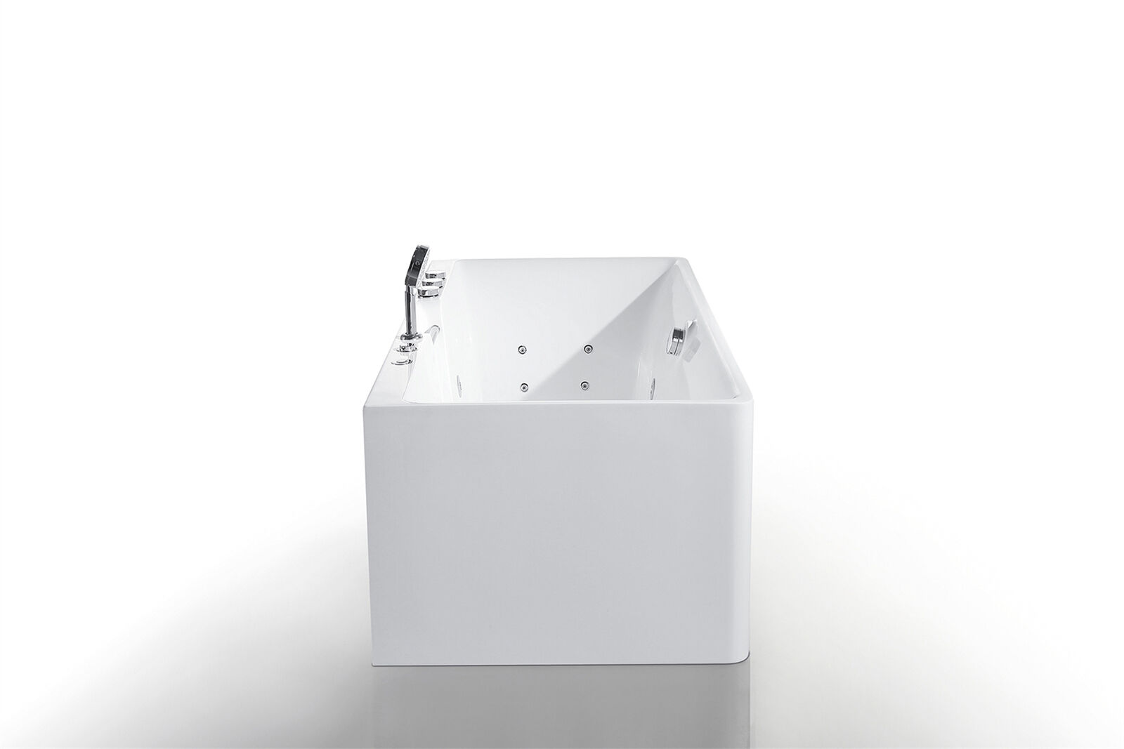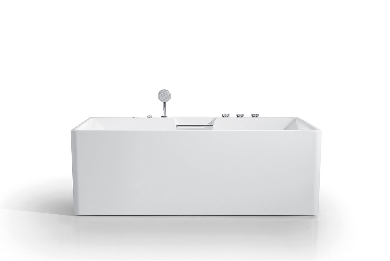 Peldēšanāšanas vanna ar masāžu, vanna, luksusa vannas, vannas, atpūta ar rokturiem 150x80 ir ideāla izvēle, lai pilnībā izbaudītu relaksējošu vannas rituālu savā mājā. Ar tām impresionējošajām izmēriem 150 x 80 x 60 cm, šī vanna nodrošina plašu un komfortablu baseina telpu. Tajā ir pievienota masāžas funkcija, kas palīdzēs atslābināt muskuļus pēc garas dienas. Standarta aprīkojums ietver masāžas sprauslas, jaucējkrānu, notekūdeņu komplektu, rokas dušu un pārplūdes aizsardzību, kas uzlabo kopējo vannas pieredzi.
